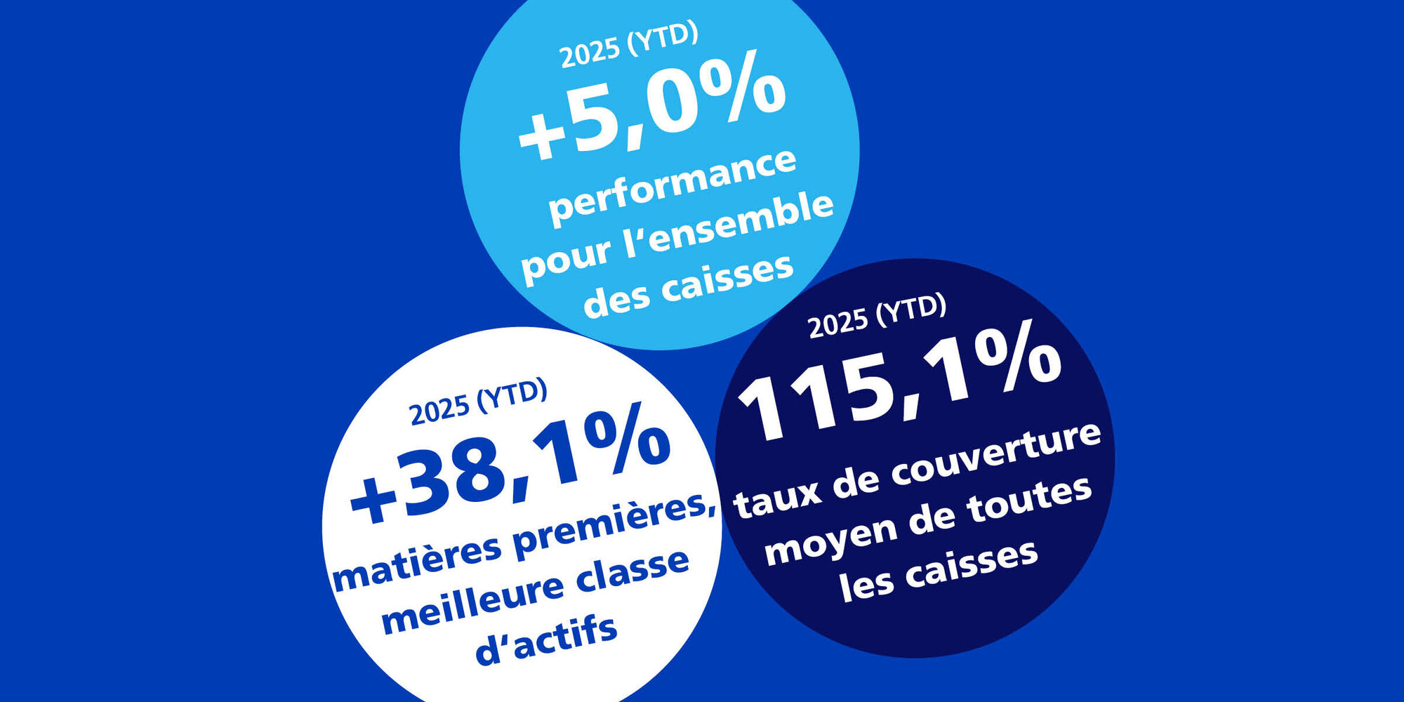 - Les caisses présentant un taux de couverture inférieur à 110% ont enregistré une performance de 4,8% (pondéré par la fortune), soit presque autant que celles affichant un taux supérieur à ce seuil, avec 5,0%. L’écart entre les deux groupes demeure inchangé par rapport au mois précédent.